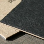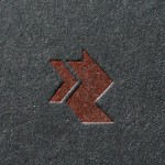 An additional challenge with a large area of ink coverage becomes holding onto small detail within the graphic and running the ink heavy enough for good dense coverage. On this card, the raw and heavy ink was desirable, the look is a like a heavy paint on chipboard. You can see how the heavy ink begins to “squeeze” a bit on both the logo and the information type. Sometime to get crisp type we can run a large graphic separate from small text even though they may be the same ink color. This allows us to run a heavier film of ink for the graphic and get solid coverage, then run a lighter film of ink for the text and get crisp type. However, that does mean an additional set up and press run.