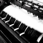 Chad, the design director, came in and spent the day on press with us. Take a look at a few press room images he created with an iphone camera using an app called HiCon - kinda nice black and white effect.