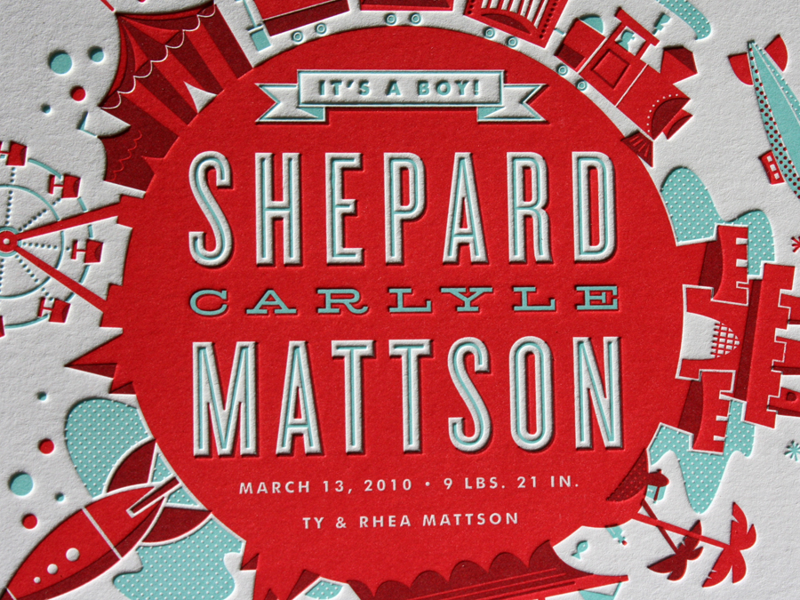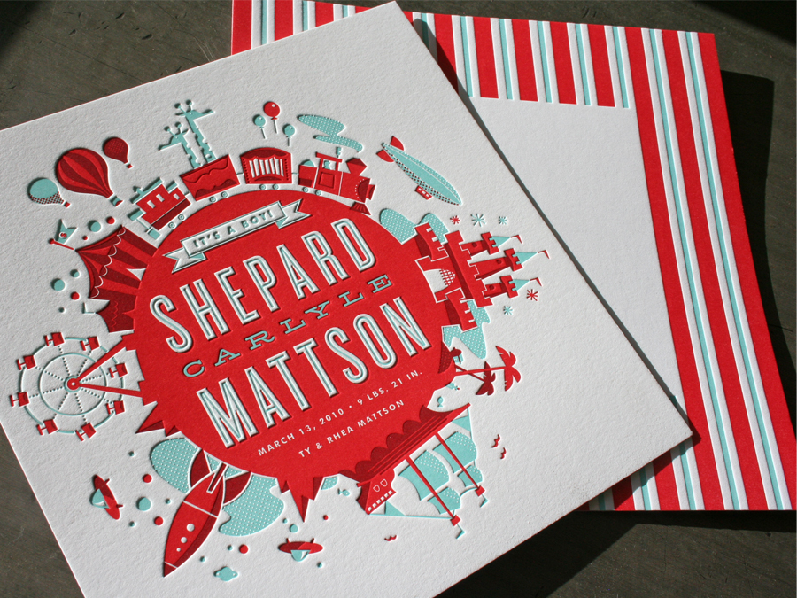Ty Mattson really outdid himself on the design and illustration of these announcements for his son. Beautiful stuff. You can see his post on them here. Be sure and put an eyeball on his other portfolio work as well. This guy knows how to illustrate and take full advantage of simple overprinting - a rare and admirable skill in today’s print design.