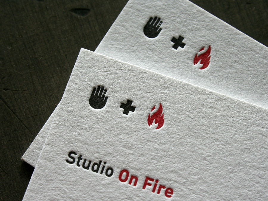 My passion behind letterpress printing and starting Studio On Fire goes back to studying original masters like William Morris, W.A. Dwiggins and Fredrick Goudy. These fellows truly understood and merged both design and production. A critique of todays design reality is that fewer and fewer designers understand the production method for which they are designing. As designers we have so many options, we’ve become generalists. At Studio On Fire design and letterpress are dating again. We are committed to making letterpress printing one of the most premium and relevant production methods for contemporary design. Understanding our niche letterpress market and offering production advice to the designers that come to us how we work. Merging design intent with letterpress printing keeps our work exciting.