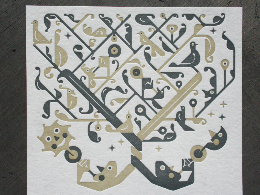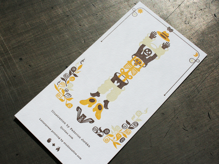 We’ve also worked with Federico in the past on a little illustration promo card with a character that comes apart like a nesting matryoshka doll, with balls. Check out another post about the insane Shakespearian Thinktopia poster we printed, also illustrated by Federico.