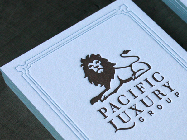 These cards were designed by Reddoor Creative in LA. Finely designed and printed business cards speak volumes about a business or an individual - and there are no half measures here. These cards are letterpress printed 2 pms colors each side plus a blind hit. The paper is custom duplexed Fluorescent White 268lb 100% cotton Crane Cover Kid Finish. We’d say they have a “thump factor”.