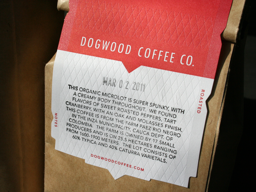 Also see the “Reserve” coffee labels we printed previously (when Dogwood was still a part of Bull Run Roasting) also created by Holmberg Design.