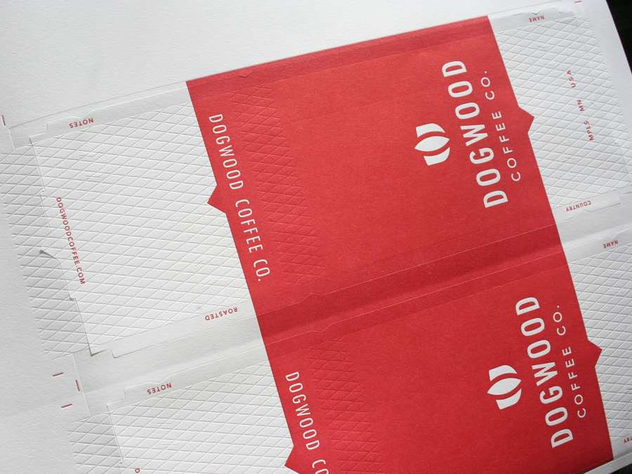 This coffee label packaging was designed locally by Holmberg Design. Dogwood Coffee Company is a small coffee roaster based out of Minneapolis, Minnesota (and generously present at our last studio party.) They source, roast and serve some truly amazing coffees. And what is especially unique to the experience of Dogwood Coffee is the single cup brewing. Visit them and always expect a well crafted, fully realized flavor. And be sure to take beans home in one of these delicious bags. This is the good stuff, these guys love crafting coffee as much as we love letterpress.