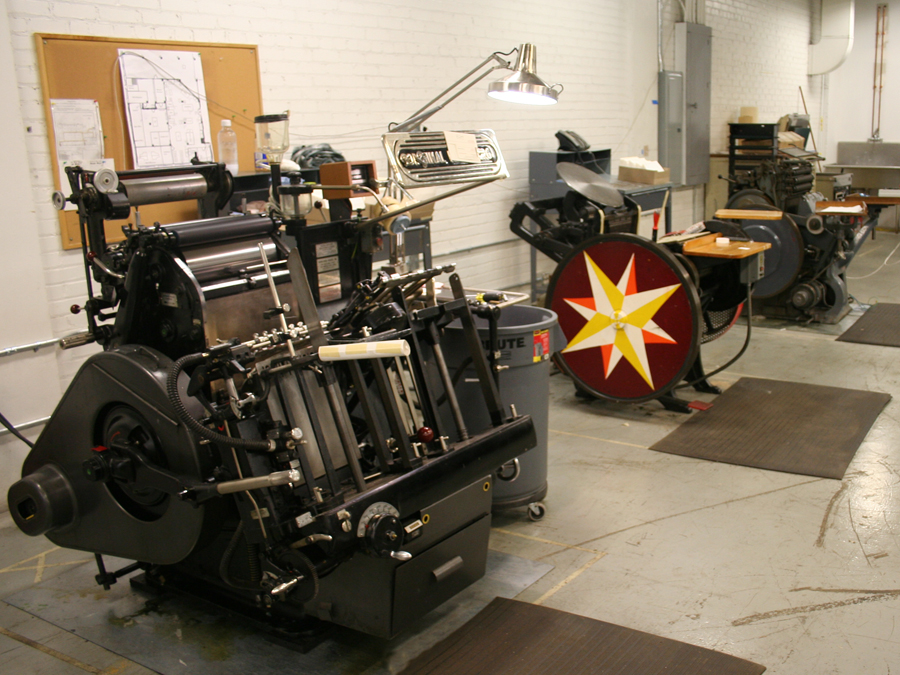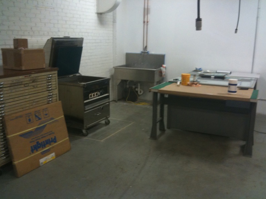 We are all moved in to our new subterranean space and feverishly printing projects with many talented designers. We look forward to getting back to blogging new work again soon.