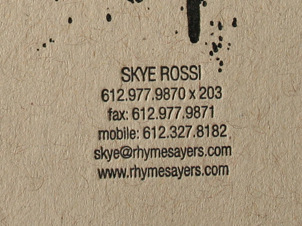 These guys are certainly one of the hottest Minneapolis record labels. Rhymesayers Entertainment sent us this business card design for a raw and painted letterpress look.