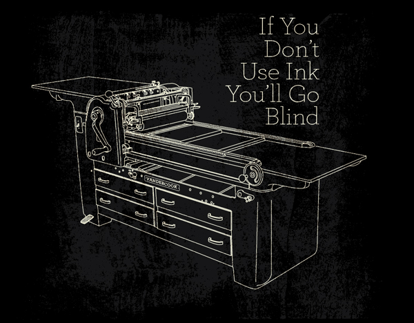 On Friday, April 9th begining at 4 PM we are having an Open Letterpress Studio. Come and visit, get out of the office early, bring a friend for a delicious brew of design and letterpress here at Studio On Fire. If you like grilled butchers shop hot dogs, some local brews and other treats, than this is good way to start your Friday night. See all our letterpress beasts and the now famous wall of beer cans. Our “new” 1950’s Swiss Geitz Platen press is suppose to arrive from Germany just in time for the event. We’ll have lots of letterpress samples to look at and a project on press with a print for you to take away. Plus we will have a new tee shirt for sale. (preview below) Hope to see you there.