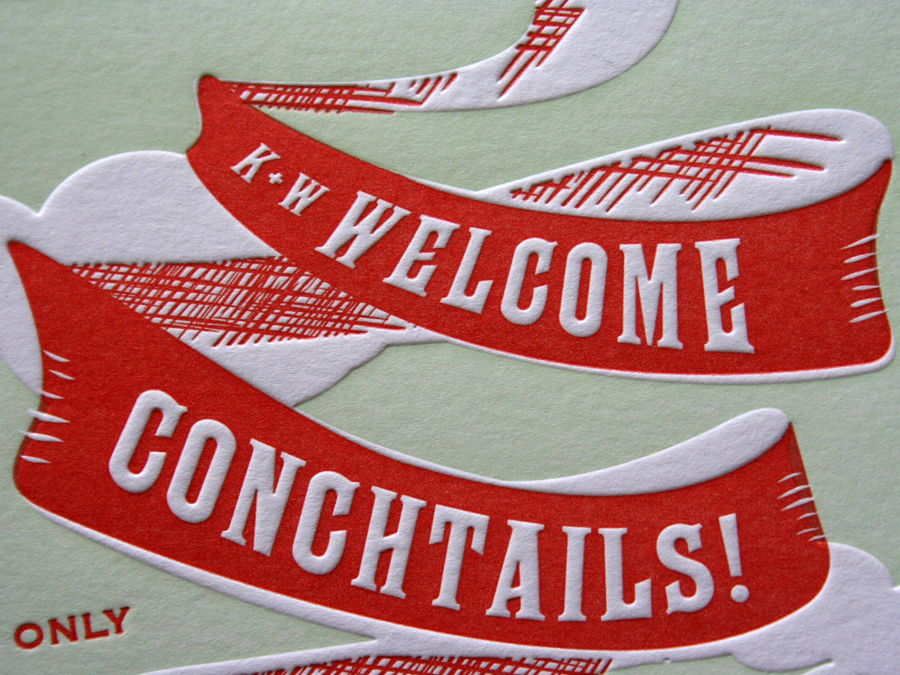 This is a letterpress printed invitation for a destination party, complementing a custom wedding system we printed a while back. These are also designed by the groom Scott Peiffer.