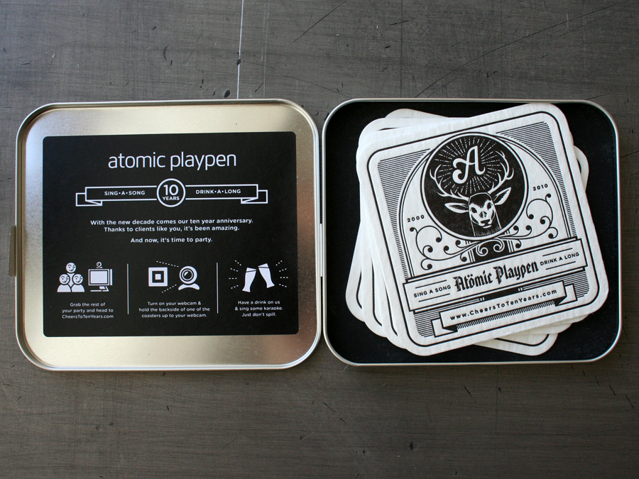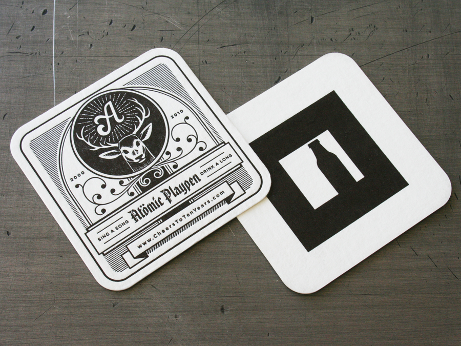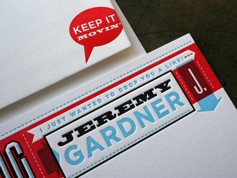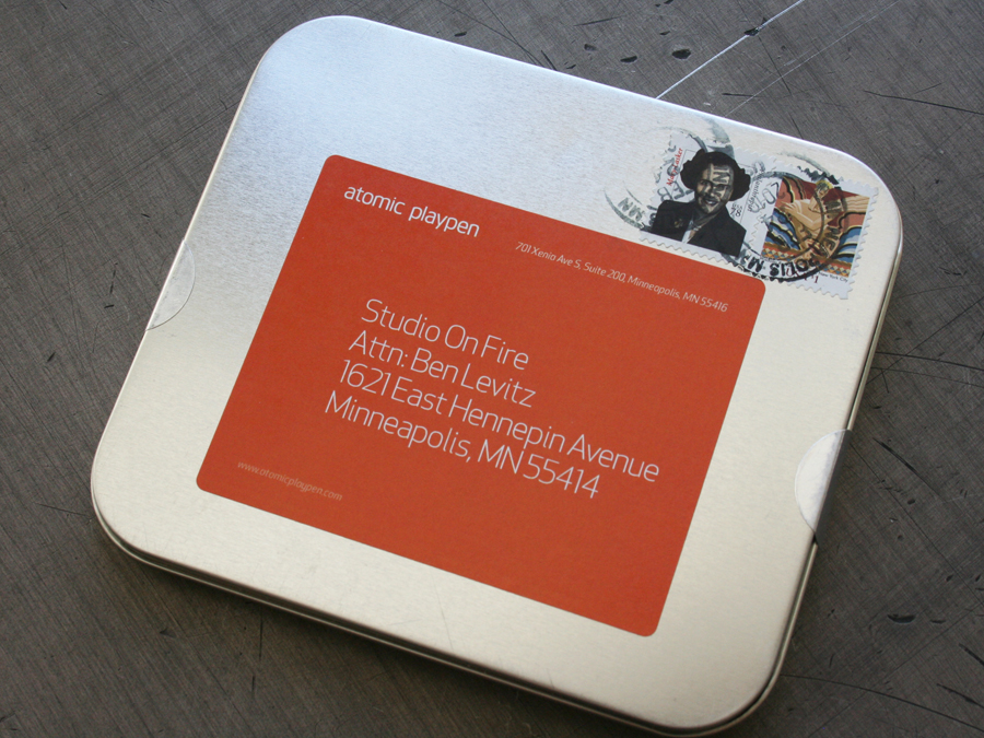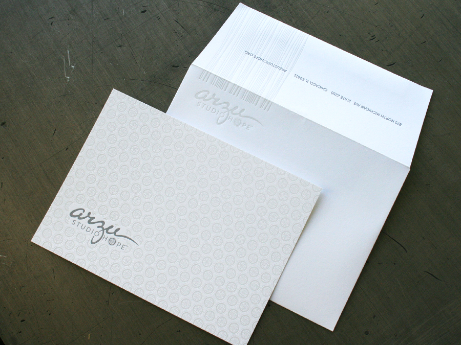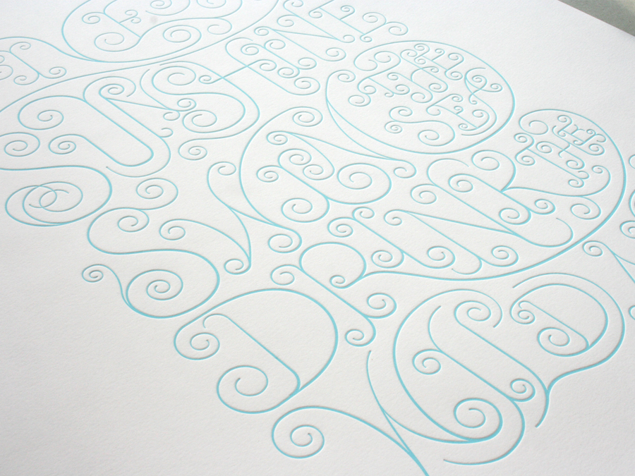 The packaging is pressed in gray and a tonal white ink. We letterpress printed the outer sleeve on a custom duplexed stock - gray on the interior, white on the exterior. We were able to print on a preconverted inner envelope which accompanies the vinyl and containing the insert.
