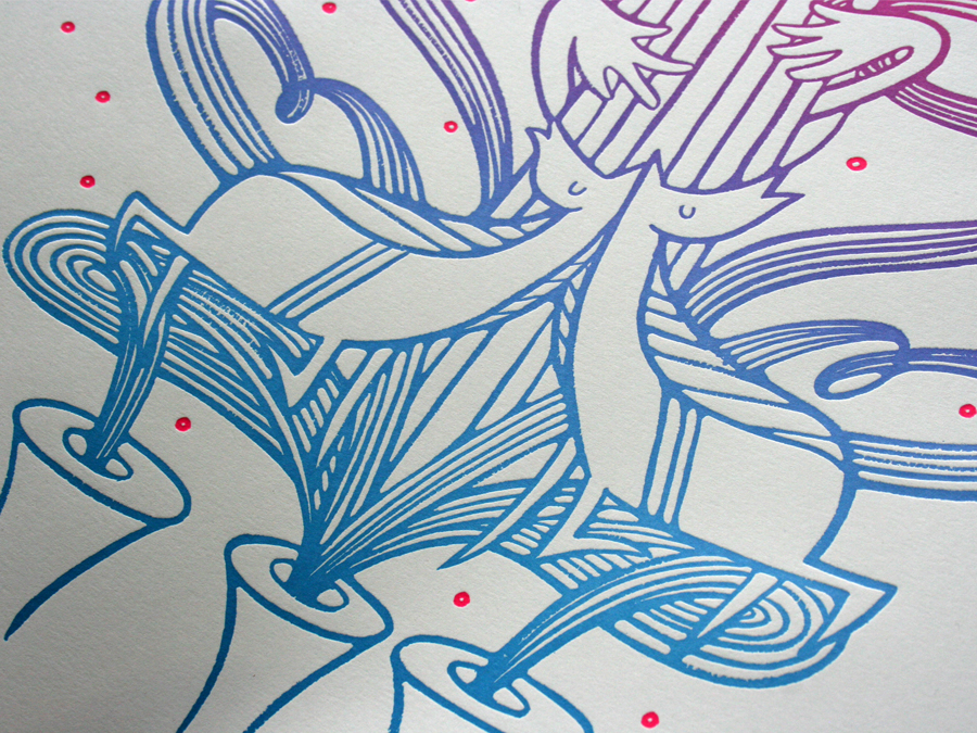 Fathom, the recent release LP from Taiga records, is a subtle and textural object of beauty and a sensory experience. The drawings were perfectly suited for letterpress and translated crisply to the printed edition. This is the description from Taiga:
